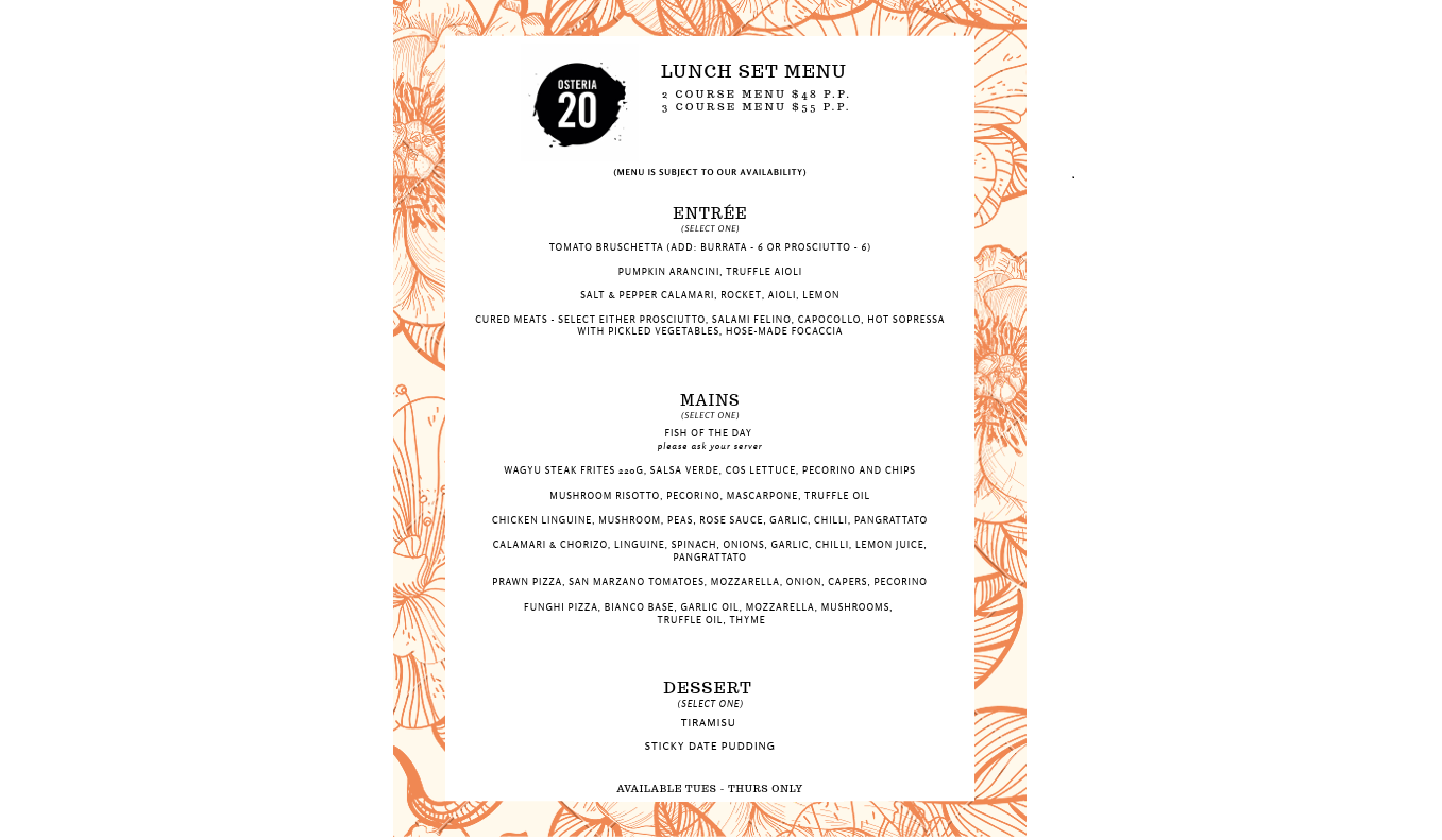 TUESDAY - SUNDAY: